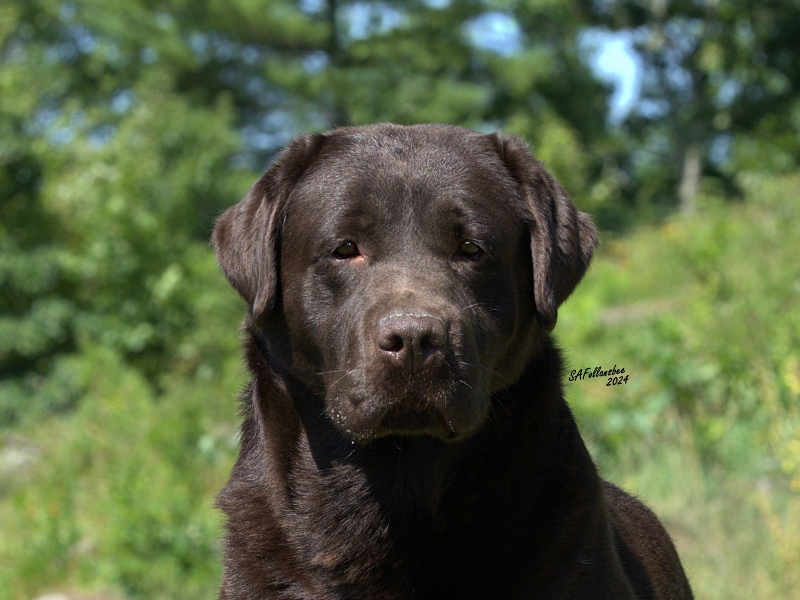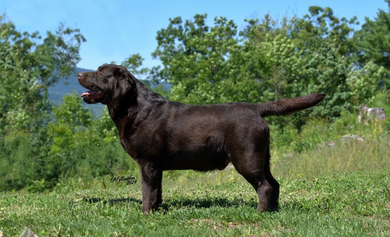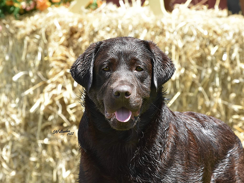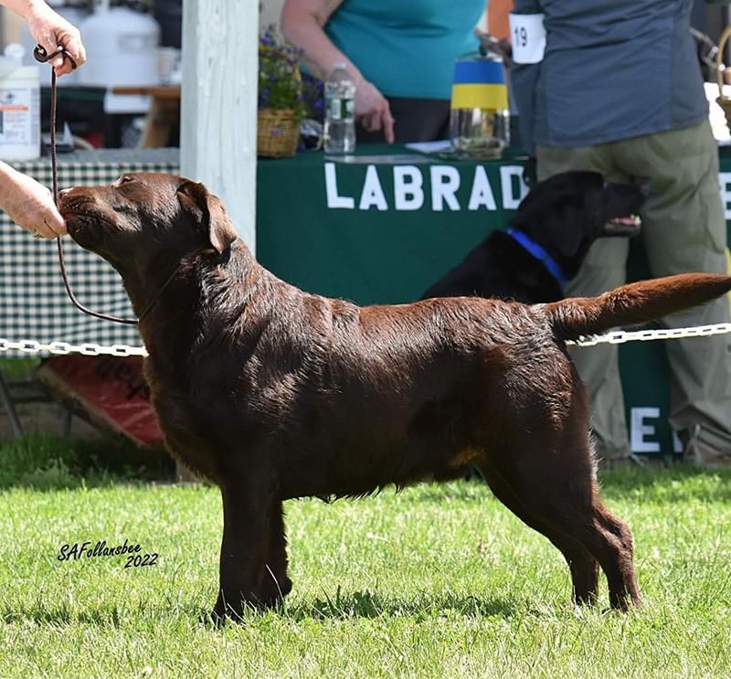 Gambit is a well-proportioned boy with a deep dark brown color coat. He has good bone and structure and is full of personality. He loves the water and anything he can run after and retrieve.