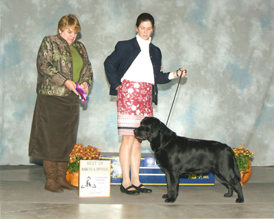 Sam is very sweet and affectionate. She was very tentative when she started in the show ring, but I knew she was special when she won her 6-9 month puppy class out of 44 at the